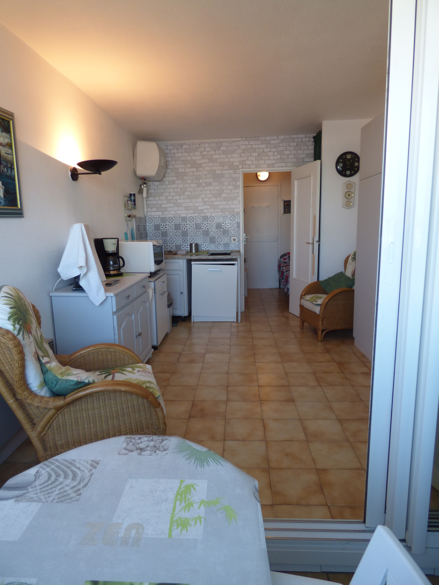 Il est composé d'une entrée avec coin cabine, une salle d'eau, un salon / séjour avec coin cuisine, le tout donnant sur une loggia fermée.